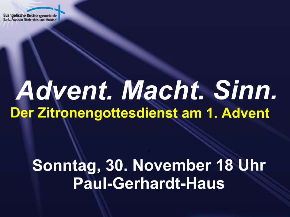 Früher war mehr Lametta! Das stimmt. Und auch im Zitronengottesdienst am 1. Advent werden wir nicht damit dienen können. Dafür erwarten Sie bekannte und neue Advents- und Weihnachtslieder sowie Texte mit Tiefgang und Musik zum Zuhören und Mitsingen.